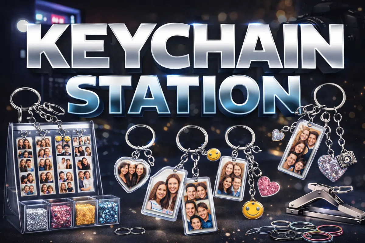 Turn real moments from your event into custom keychains created on-site, in real time. Guests take their photos, choose their favorite image, and our team handles the rest. Works as a great Keepsake or Party Favor.