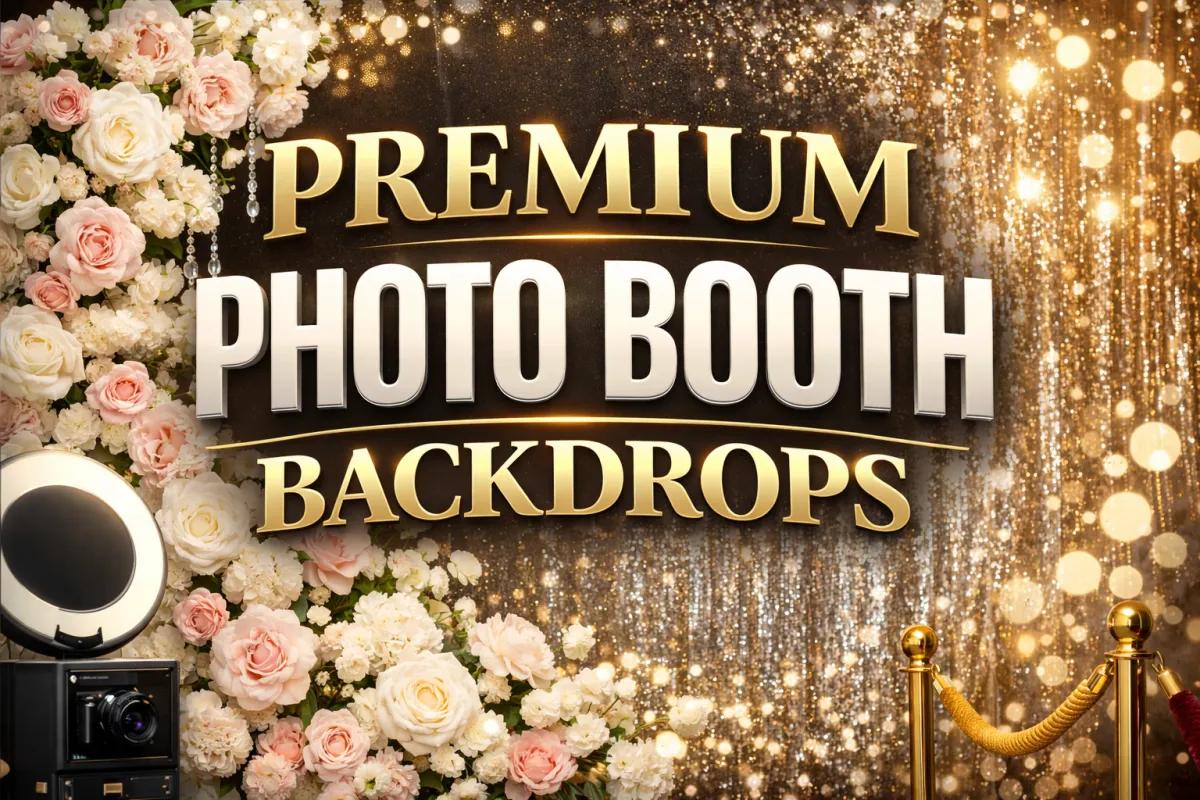 Our Premium Photo Booth Backdrop Options are designed to transform any space into a stunning, camera-ready experience. ✨ Glam sequin walls, 🌿 Greenery and floral-inspired walls & 🏢 Custom branded backdrops. Have an Idea? Share it with our Designer and bring your vision to life!