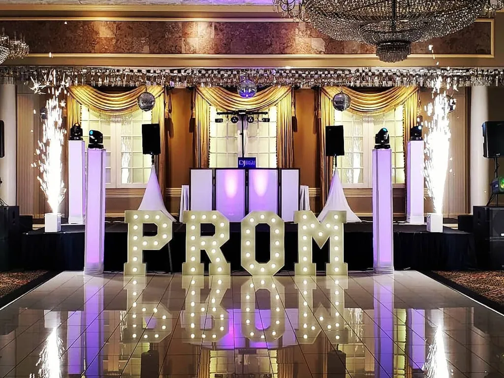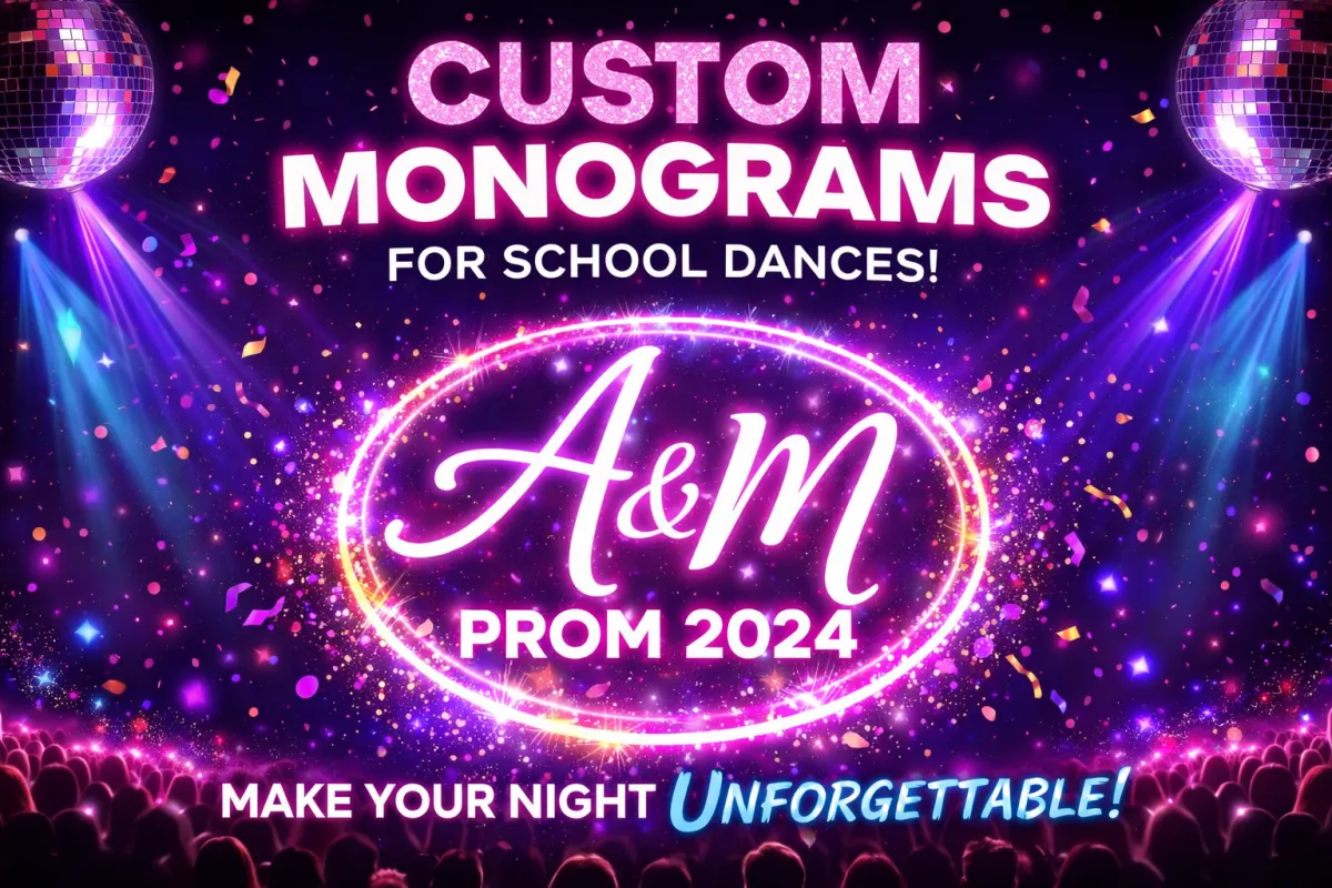 Personalize your event with a Customized Monogram, a stunning way to showcase your name, logo, or message in lights! Add a unique, elegant touch to your school event. Transform any space into a memorable, customized experience.